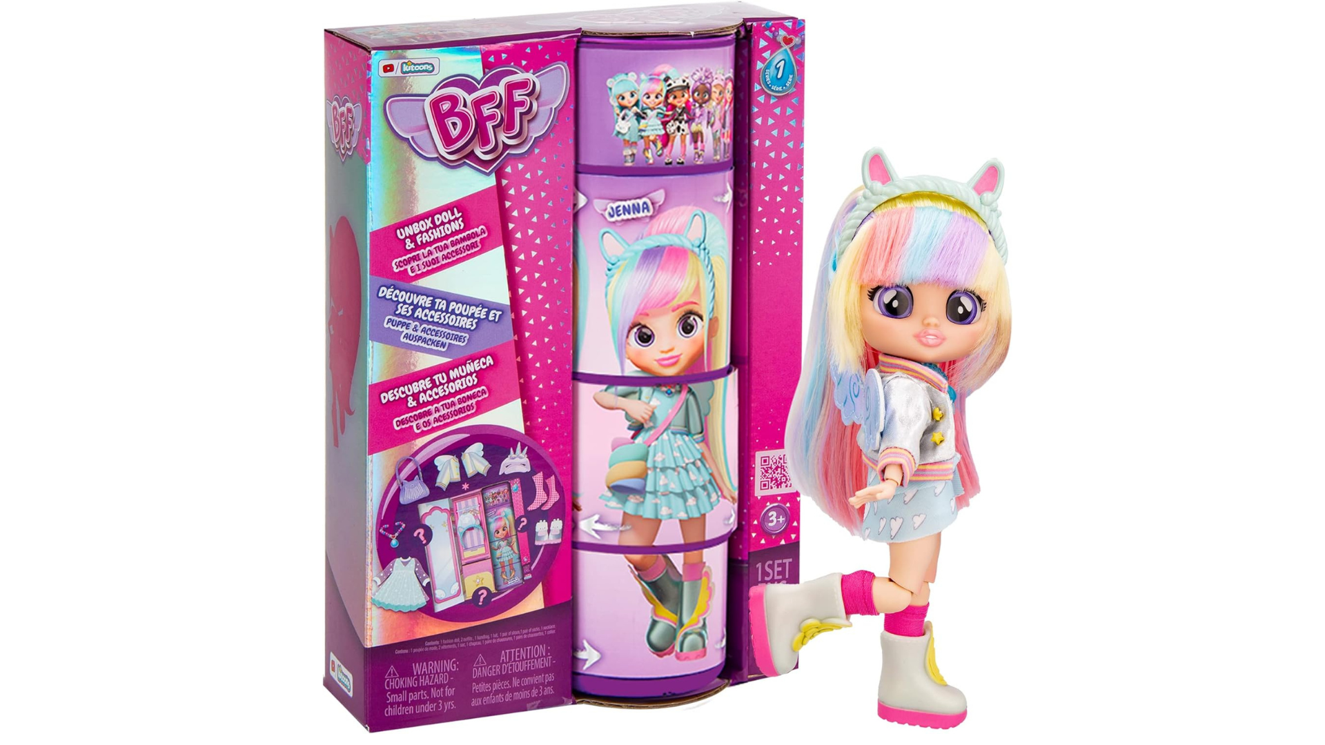 Fashion Collectible Doll with Long Hair, Fabric Clothes and 9 Accessories