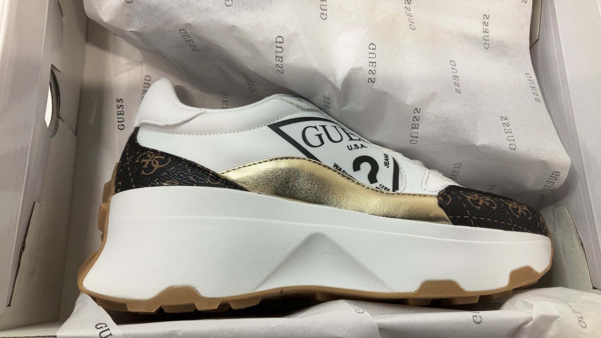 Color: White/Brown Logo
