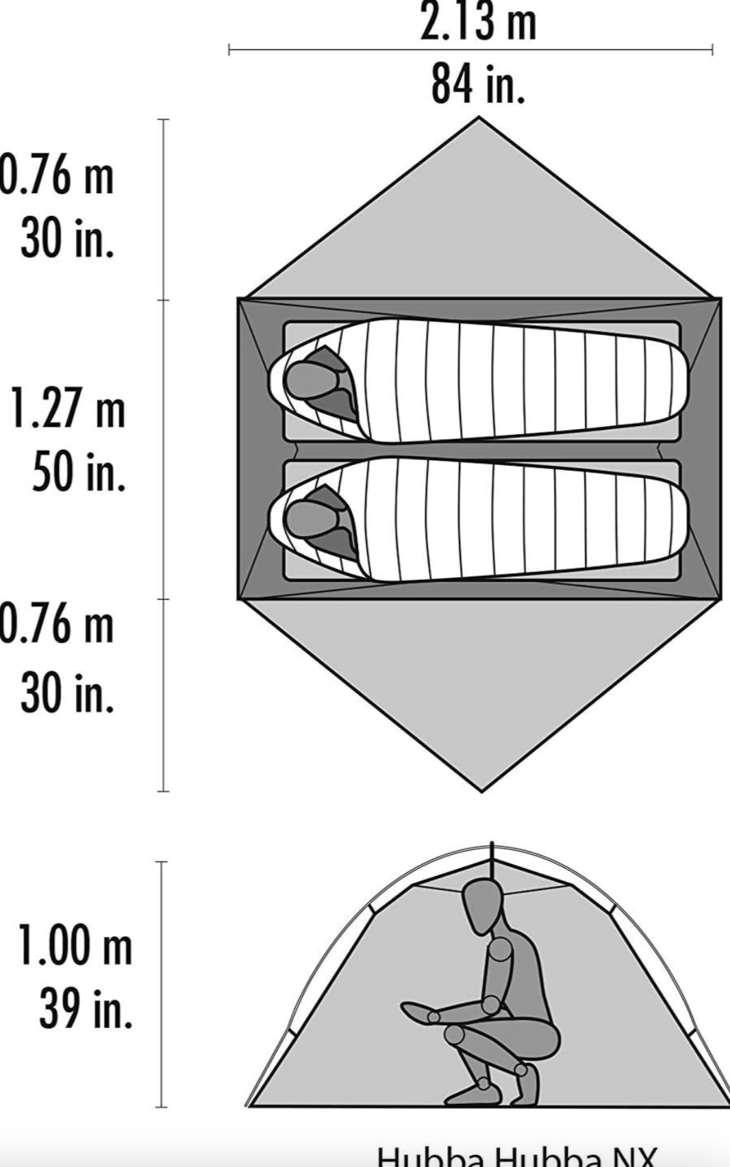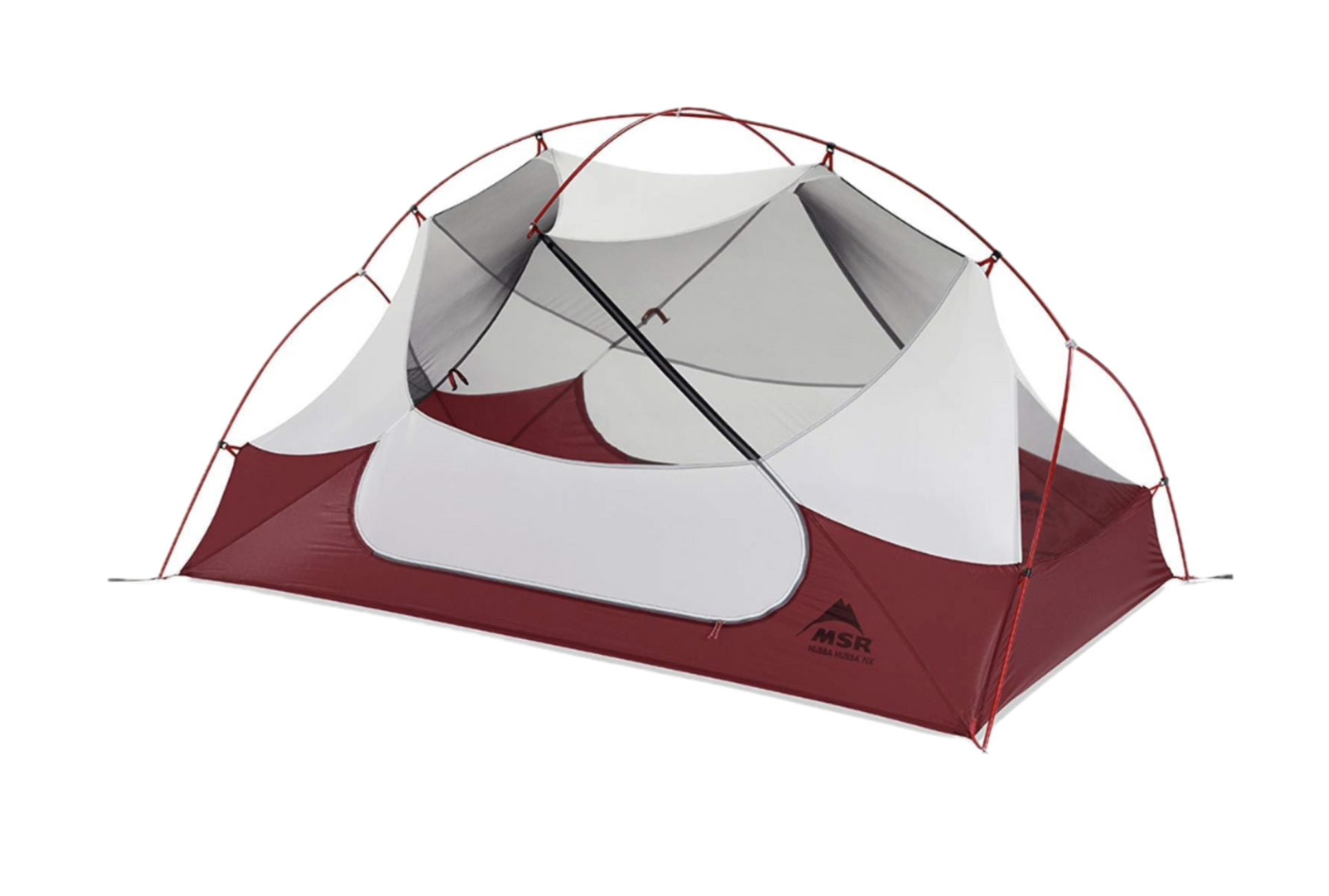 The MSR Hubba Hubba NX 2-Person Lightweight Backpacking Tent is the quintessential 3-season backpacking tent. The freestanding design features pole geometry and a non-tapered floor that maximizes space with 29 square feet of floor area, and a peak interior height of 39 inches. Two generous vestibules provide an additional 8.75-square-feet on each side of the 2-door tent (total 17.5-square-feet) for gear storage. The adjustable, cross-ventilating rainfly features a kickstand vent, and rollup vestibule for stargazing. Setup is easy thanks to the unified hub-and-pole system, and color-coded clips. For fast and light travel, the body of the tent can be left behind, and a minimalist shelter constructed using a footprint (sold separately), poles, and rainfly. Includes tent, poles, rainfly, stakes, guy lines, and compression stuff sack (tent packs down to 18x6 inches). Available in two configurations: with the DuraShield Coating and DAC Featherlite NFL poles where complete setup weighs 3.5 pounds, minimum setup weighs 3 pounds, or with the Xtreme Shield Waterproof Coating (lasts up to 3 times longer than standard coatings) with premium Easton Syclone Poles (resists breaking in fierce winds) where complete setup weighs 3.5 pounds, minimum setup weighs 3 pounds.