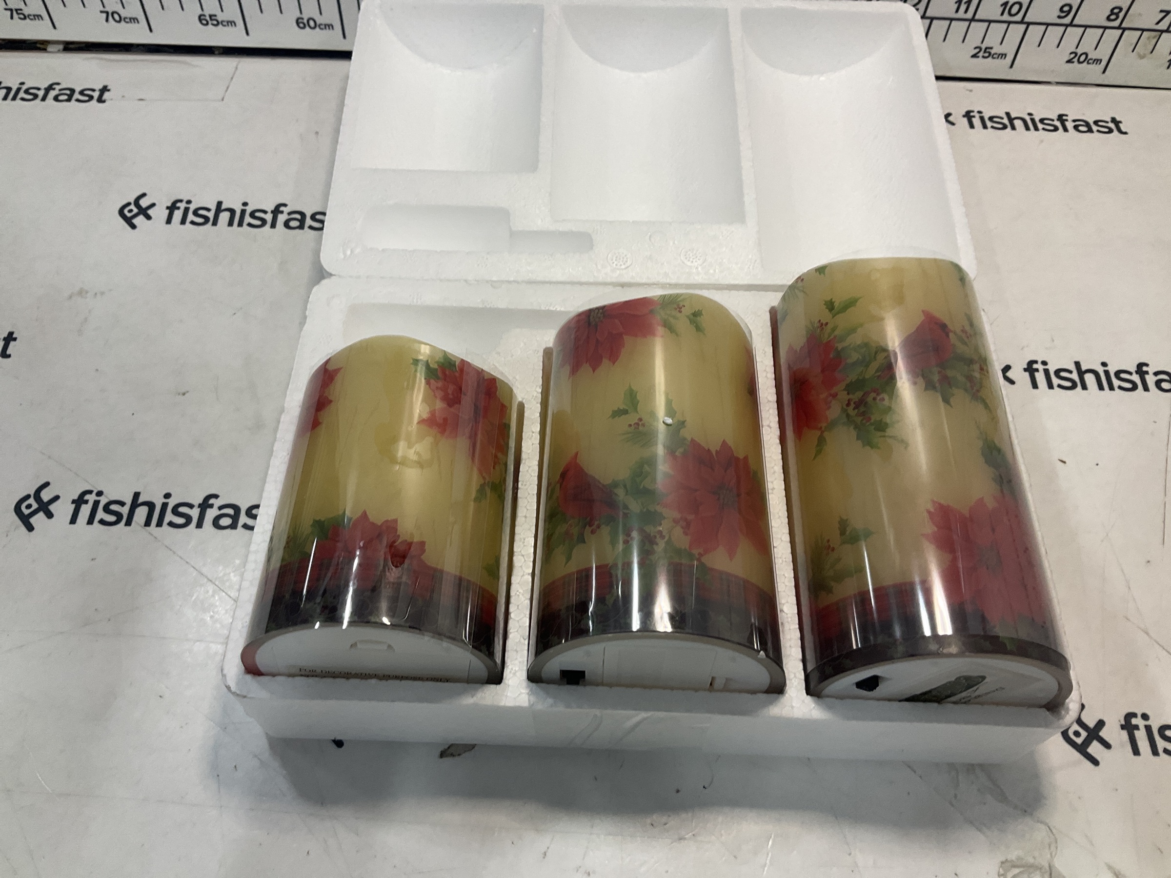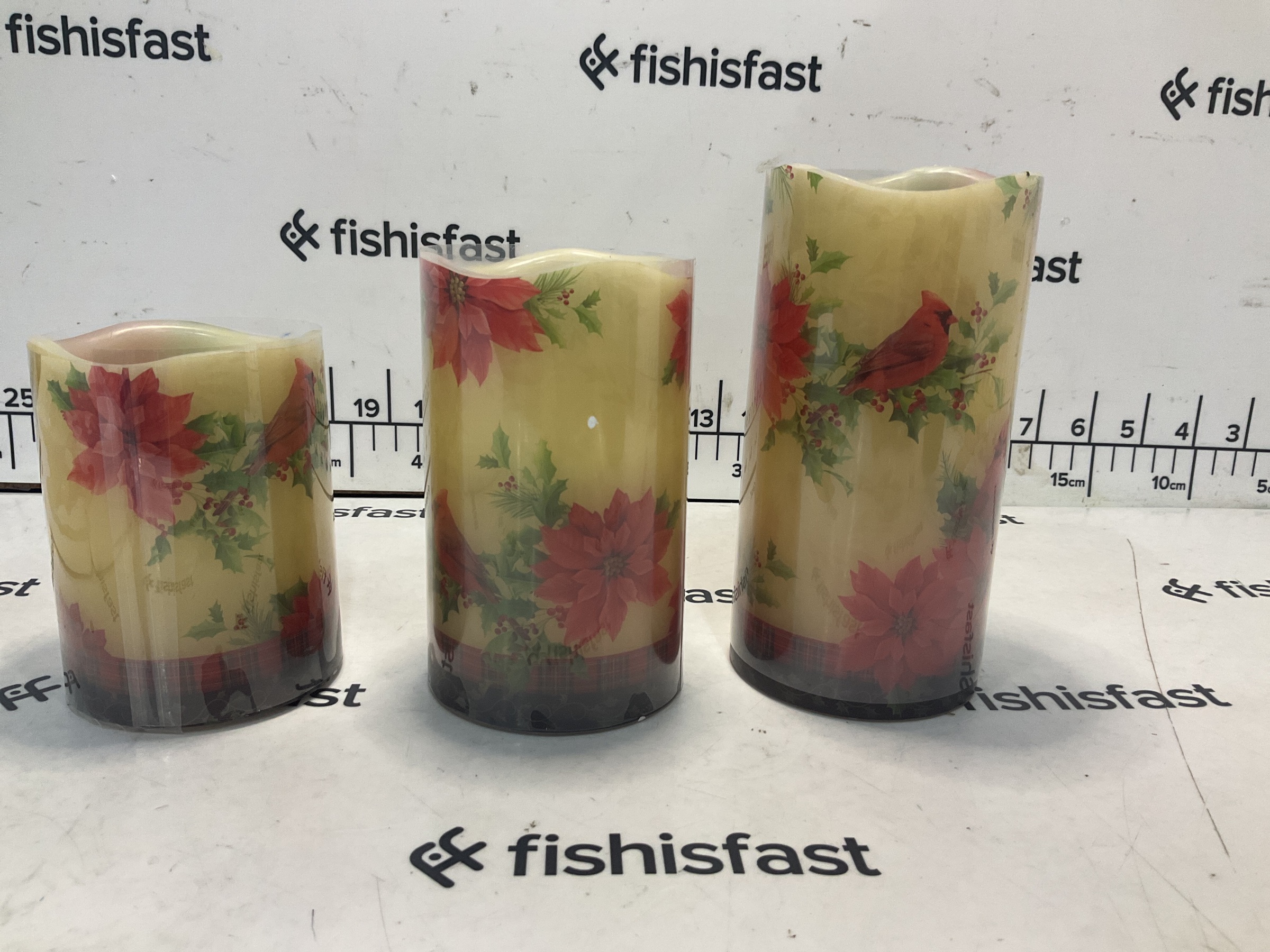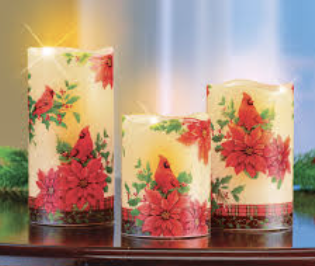 LED Flameless Poinsettia Cardinal Candles Set of 3